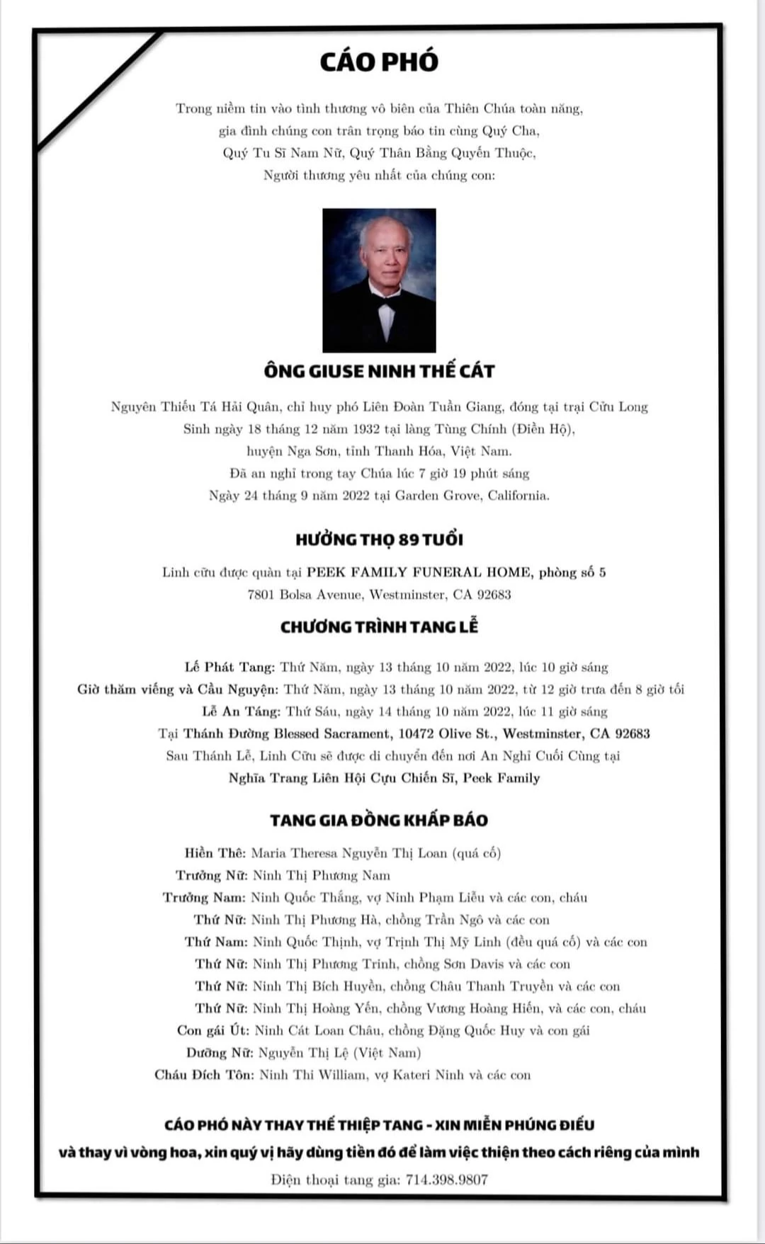 Ngày 24 tháng 9 năm 2022, thân phụ của Loan Châu từ trần vào lúc 7 giờ 19 phút sáng theo giờ địa phương, hưởng thọ 89 tuổi.[2]