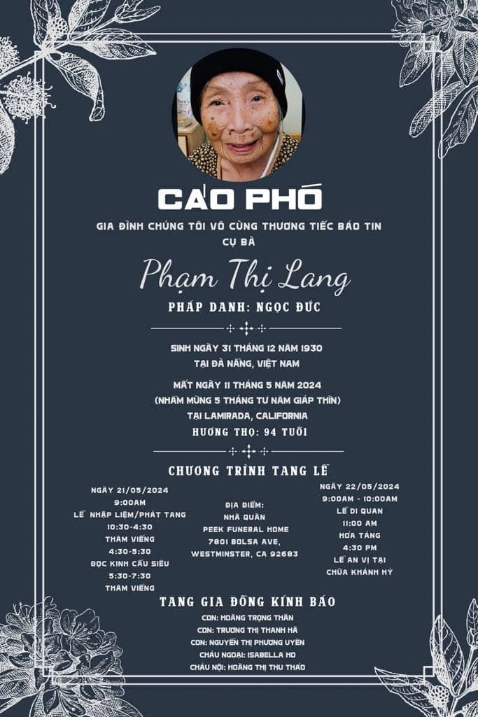 Ngày 11 tháng 5 năm 2024, thân mẫu của Thanh Hà từ trần tại Hoa Kỳ, hưởng thọ 94 tuổi.[1]